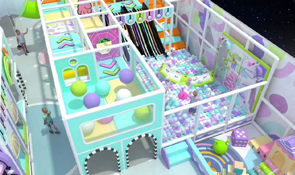 - Ball pits and soft areas: